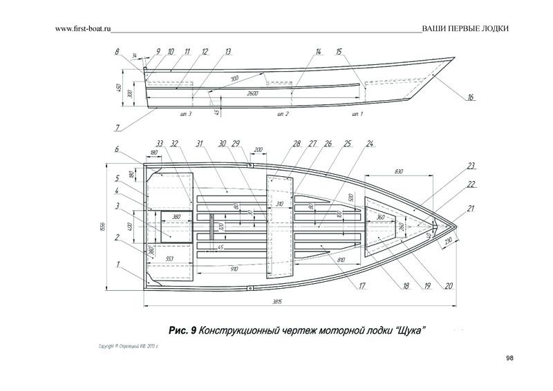 Проект продается "как есть" в электронном виде. Полученной документации вполне достаточно для приобретения необходимых материалов, самостоятельного изготовления корпуса лодки "Щука".
